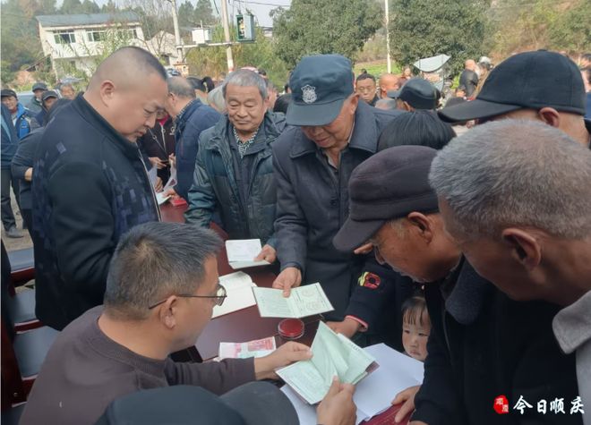 12月10日下午,尽管天气寒冷,但在顺庆区潆溪街道灶君庙村党群服务中心的村民文化活动广场上却暖意融融,热闹非凡。灶君庙村股份经济合作联合社收益分红大会正在举行,首次拿到村集体改革分红的村民兴高采烈地排队签字、按手印,按股领分红。